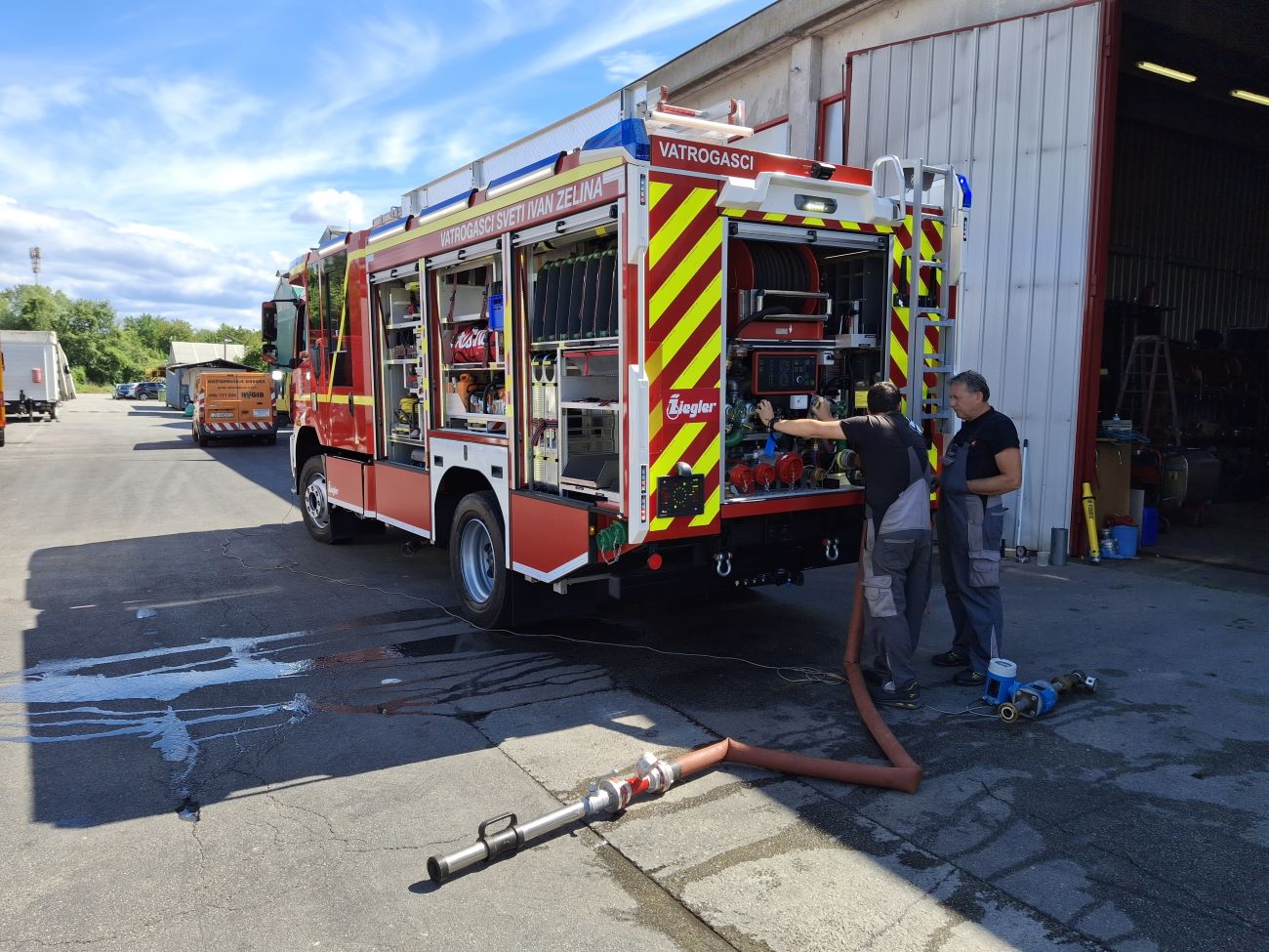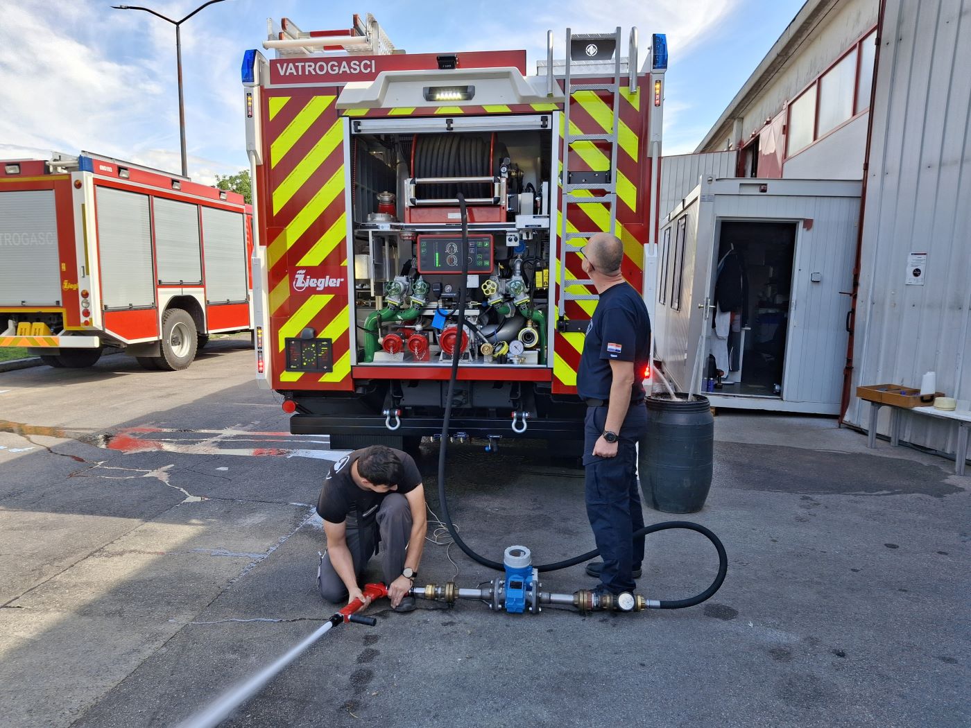Djelatnici Centra za ispitivanje i normizaciju tehnike Državne vatrogasne škole, 10. i 15. srpnja 2025. godine na zahtjev naručitelja, tvrtke Ziegler d.o.o. ispitali su vatrogasno vozilo za gašenje požara vodom i pjenom i uređaj za gašenje prahom na  vatrogasnom vozilu.