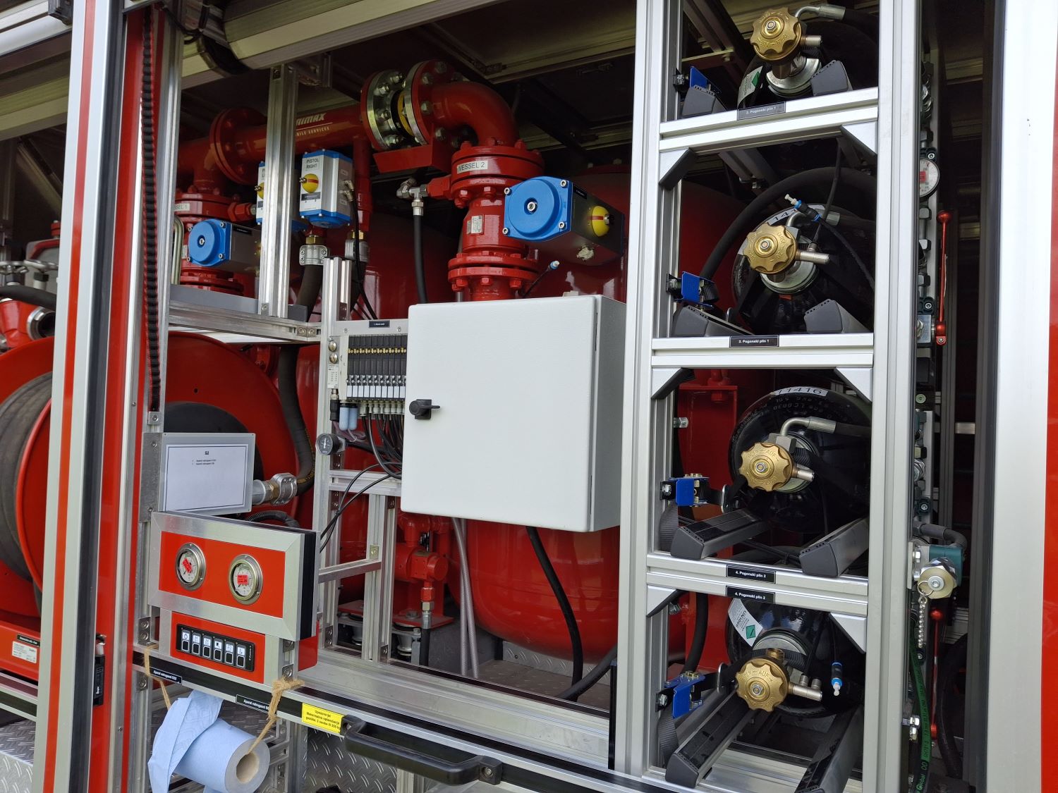 Ispitivanje uređaja za gašenje prahom  MINIMAX tipa P1500 na vatrogasnom vozilu INA-VATROGASNI SERVISI d.o.o. je izvršeno nakon obavljenog servisa na uređaju od strane tvrtke Ziegler d.o.o., umjeravanja manometara, redukcijskih i sigurnosnih ventila te vanjskog pregleda spremnika za prah. Vanjski pregled spremnika za prah obavili su djelatnici Opreme pod tlakom d.o.o. Sukladno Pravilniku  o pregledima i ispitivanju opreme pod tlakom visoke razine opasnosti („Narodne novine“, br. 75/2020.) Oprema pod tlakom d.o.o. izdala je Zapisnike o pregledima i ispitivanju opreme pod tlakom te u Očevidnike pregleda opreme pod tlakom visoke razine opasnosti upisala datume sljedećeg pregleda (vanjski, unutarnji) odnosno ispitivanja (tlačna proba) opreme pod tlakom. Ispitivanje se sastajalo od pregleda tehničke dokumentacije i provjera rada uređaja za gašenje prahom (pregled općeg stanja i sastavnih dijelova uređaja, postizanje radnog tlaka u spremnicima, poligonsko ispitivanje praha, dopunjavanje spremnika pogonskim plinom za održavanje radnog tlaka, rasterećenje spremnika i ispiranje uređaja). Funkcionalno ispitivanje vatrogasnog vozila i uređaja dalo je ispravne rezultate te su sukladno Pravilniku o vatrogasnoj tehnici („Narodne novine“, br. 5/2021.) izdani Zapisnici o prvom odnosno periodičnom ispitivanju i Uvjerenja o ispravnosti vatrogasne tehnike.